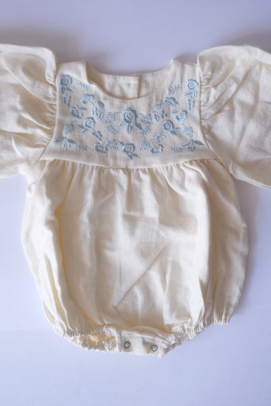 Duck, Duck, Goose Blouse | Baby Blue & Milk Mini Check Linen in 18/24M
