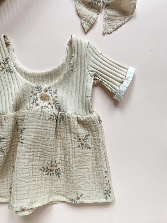 Vintage Floral Dress Ribbed Knit Muslin in 2-4T