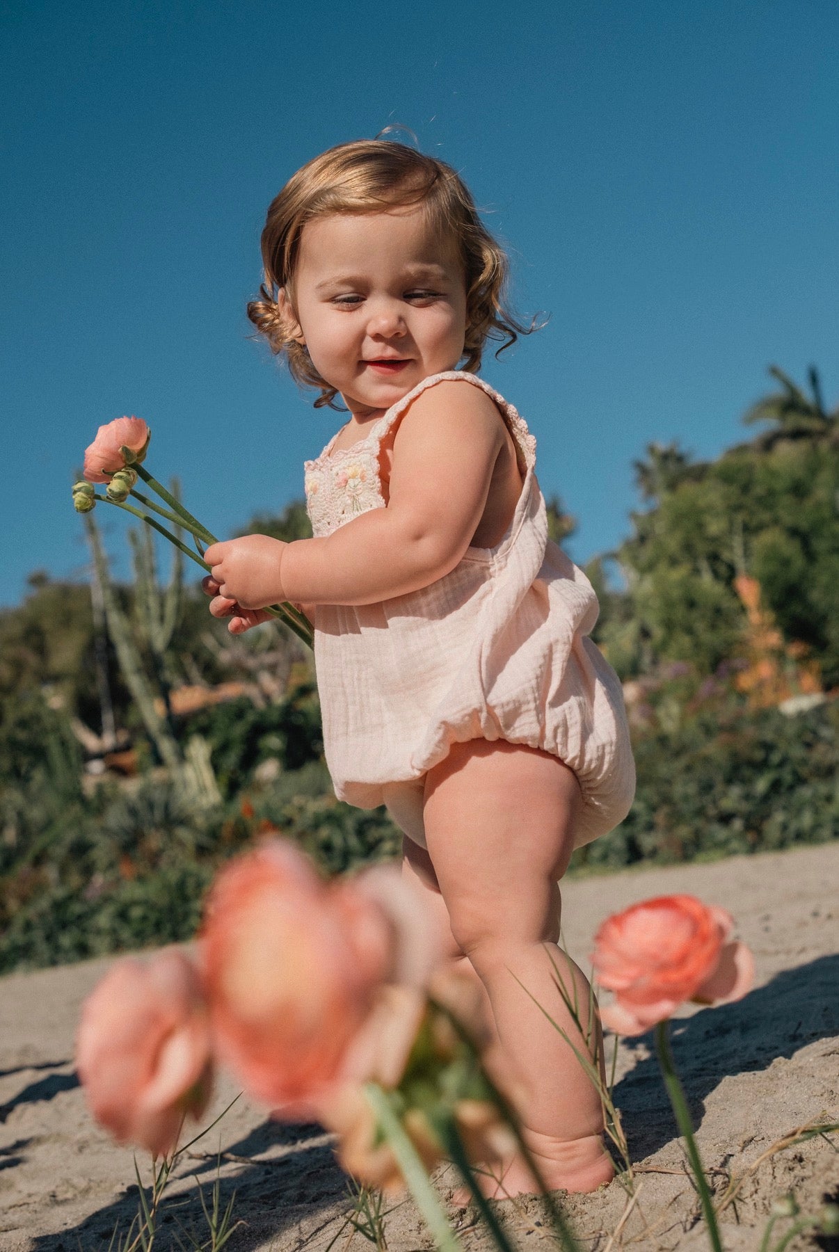 Crafted in dreamy pastel pink with soft, breathable cotton gauze—gentle on delicate skin and perfect for crawling, playing, and discovering the world. Made slowly in Peru with intention and care.