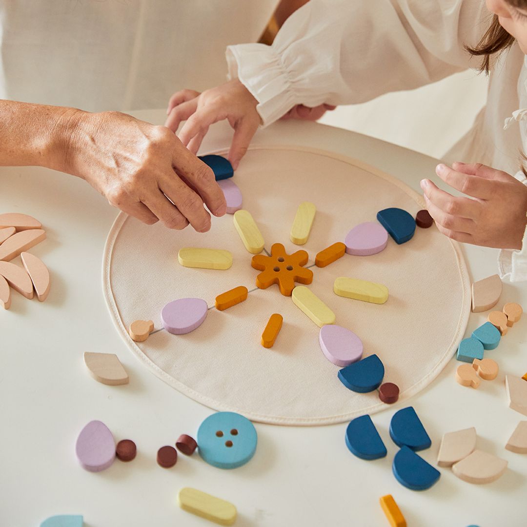 • Relax the body and mind as your create patterns and designs with the PlanToys Mandala