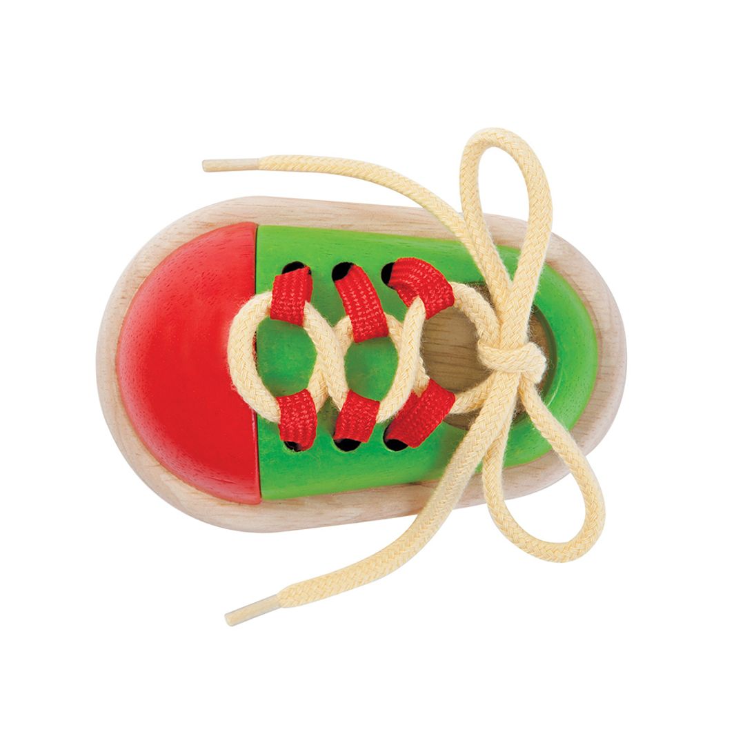 Learn how to tie your shoes! The laces on this wooden shoe can help little ones develop their hand-eye coordination and fine motor skills so they can tie their shoes on their own one day.